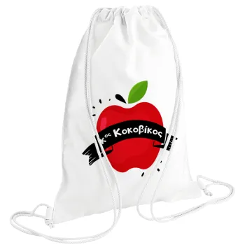 Αναμνηστικό Δώρο Δασκάλου Κόκκινο Μήλο, Τσάντα πλάτης πουγκί GYMBAG λευκή (28x40cm)