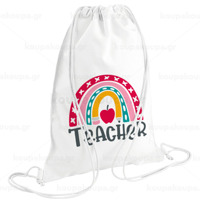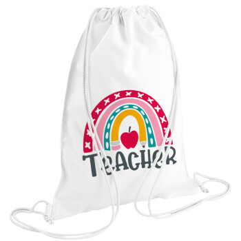 Rainbow teacher, Τσάντα πλάτης πουγκί GYMBAG λευκή (28x40cm)