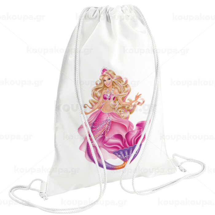 Barbie γοργόνα μπλε, Τσάντα πλάτης πουγκί GYMBAG λευκή (28x40cm)