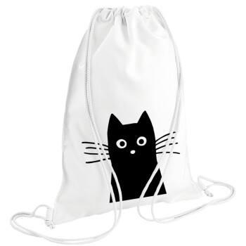 Μαύρη γάτα, Τσάντα πλάτης πουγκί GYMBAG λευκή (28x40cm)