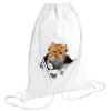 Cat cracked, Τσάντα πλάτης πουγκί GYMBAG λευκή (28x40cm)