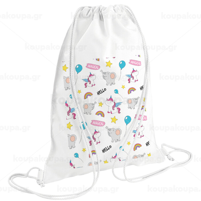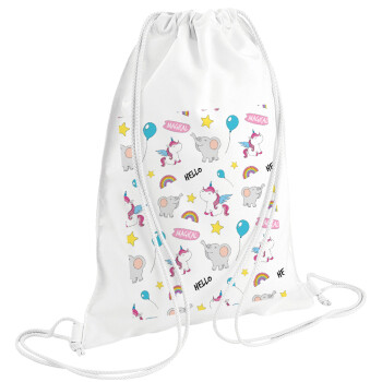 Happy Clouds Doodle, Τσάντα πλάτης πουγκί GYMBAG λευκή (28x40cm)