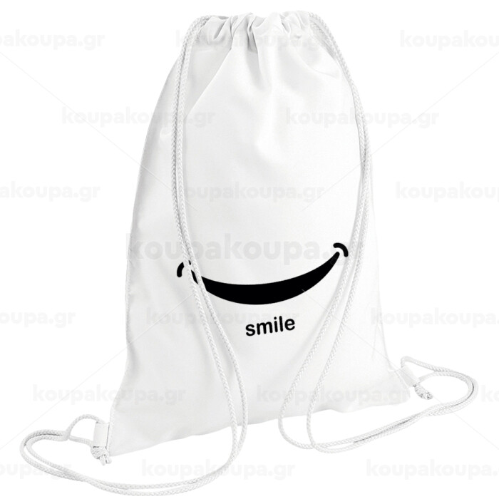 Smile!!!, Τσάντα πλάτης πουγκί GYMBAG λευκή (28x40cm)
