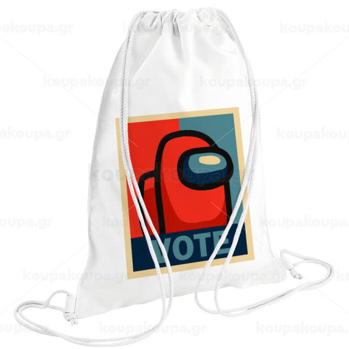 Among US VOTE, Τσάντα πλάτης πουγκί GYMBAG λευκή (28x40cm)