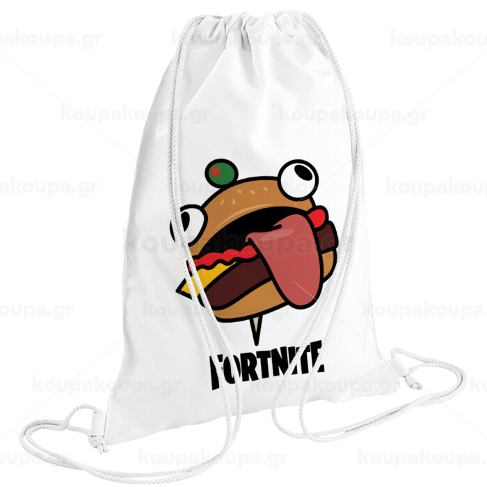 Fortnite Durr Burger, Τσάντα πλάτης πουγκί GYMBAG λευκή (28x40cm)