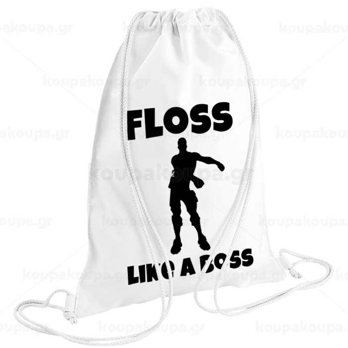 Fortnite Floss Like a Boss, Τσάντα πλάτης πουγκί GYMBAG λευκή (28x40cm)