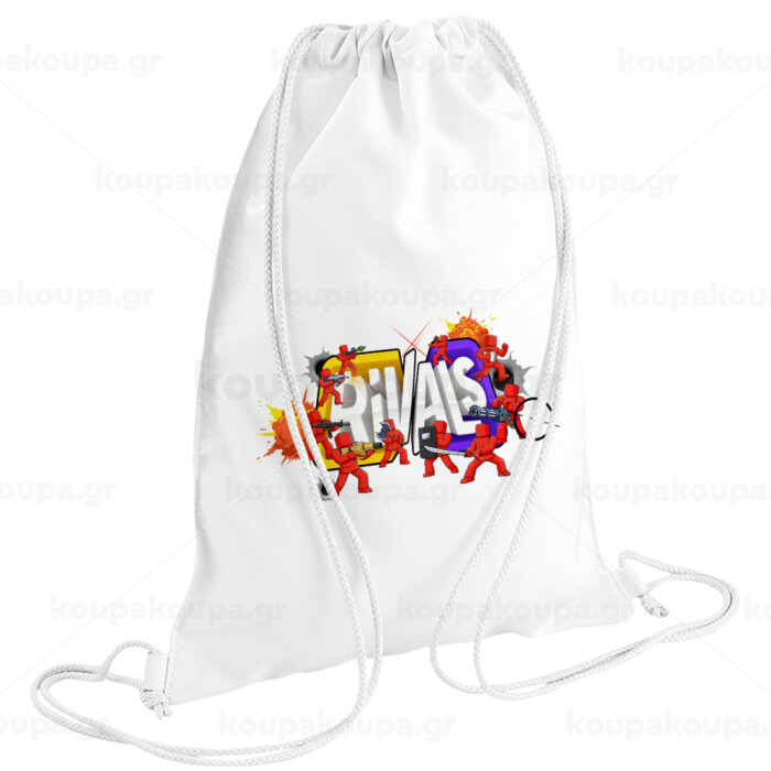 Αθλητική τσάντα πλάτης με διαστάσεις 28x40cm. Τα κορδόνια σύσφιξης μπορούν να τραβηχτούν για να κλείσουν την τσάντα και στη συνέχεια να χρησιμοποιηθούν ως ιμάντες ώμου για τη μεταφορά της τσάντας.