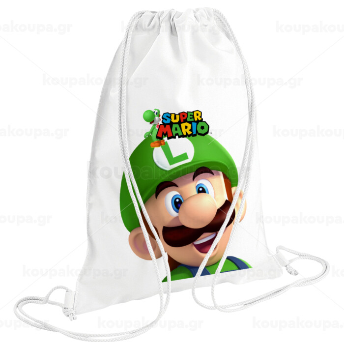 Super mario Luigi, Τσάντα πλάτης πουγκί GYMBAG λευκή (28x40cm)