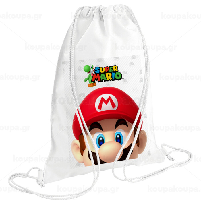 Super mario, Τσάντα πλάτης πουγκί GYMBAG λευκή (28x40cm)