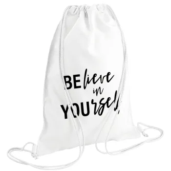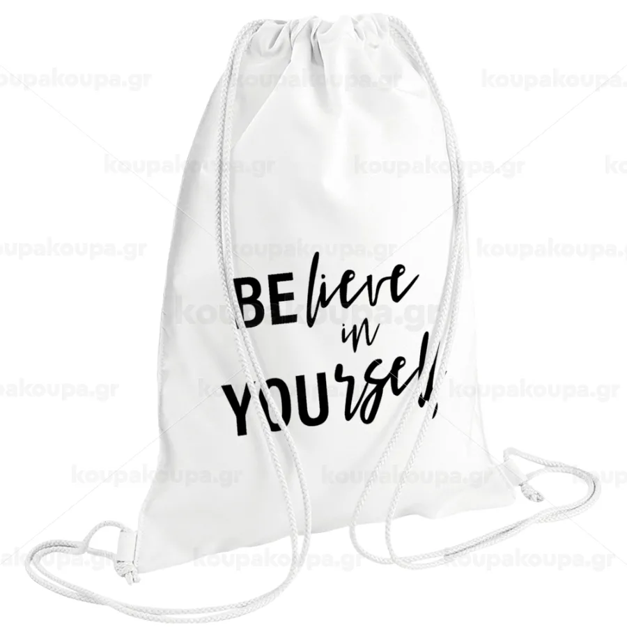 Believe in your self, Τσάντα πλάτης πουγκί GYMBAG λευκή (28x40cm)