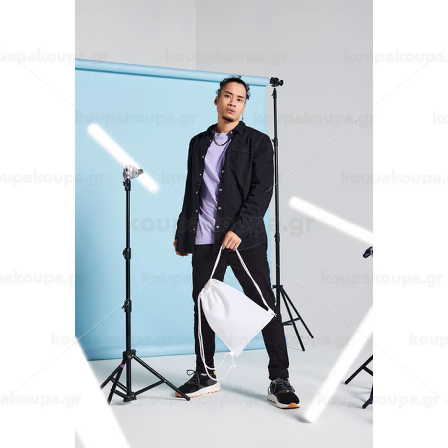 Αθλητική τσάντα πλάτης με διαστάσεις 28x40cm. Τα κορδόνια σύσφιξης μπορούν να τραβηχτούν για να κλείσουν την τσάντα και στη συνέχεια να χρησιμοποιηθούν ως ιμάντες ώμου για τη μεταφορά της τσάντας.