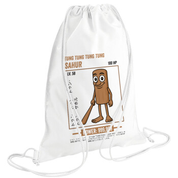 Tung Tung Tung Sahur, Τσάντα πλάτης πουγκί GYMBAG λευκή (28x40cm)