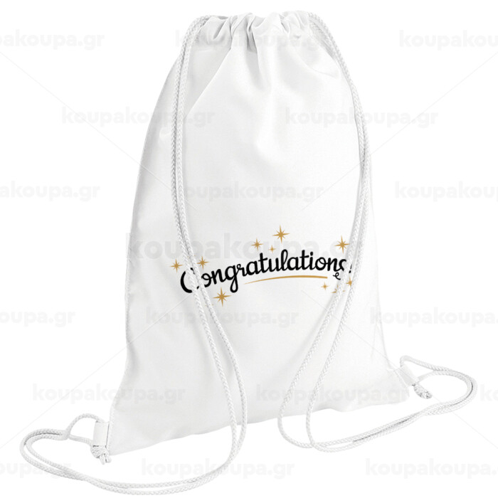 Congratulations, Τσάντα πλάτης πουγκί GYMBAG λευκή (28x40cm)