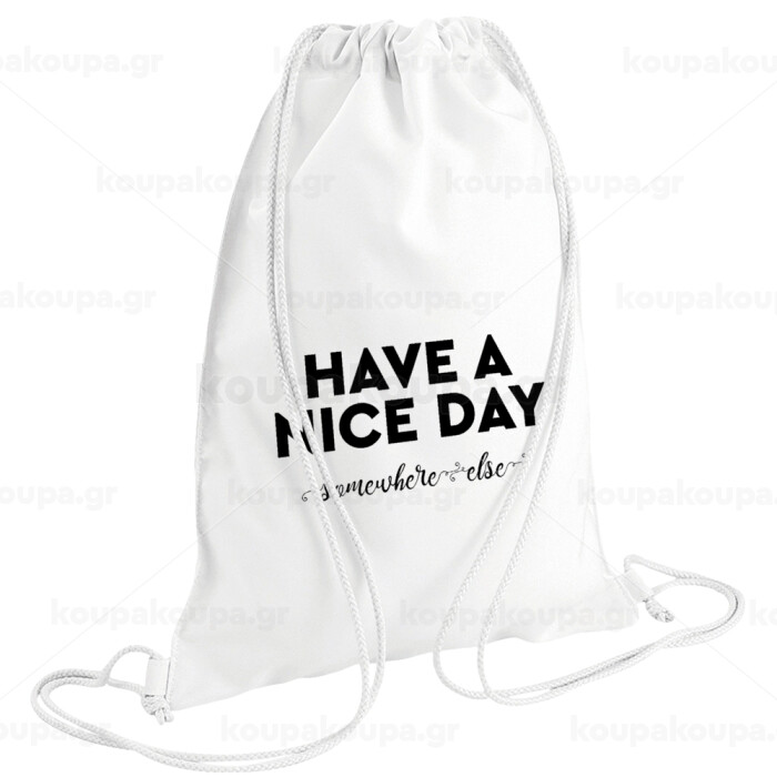 Have a nice day somewhere else, Τσάντα πλάτης πουγκί GYMBAG λευκή (28x40cm)