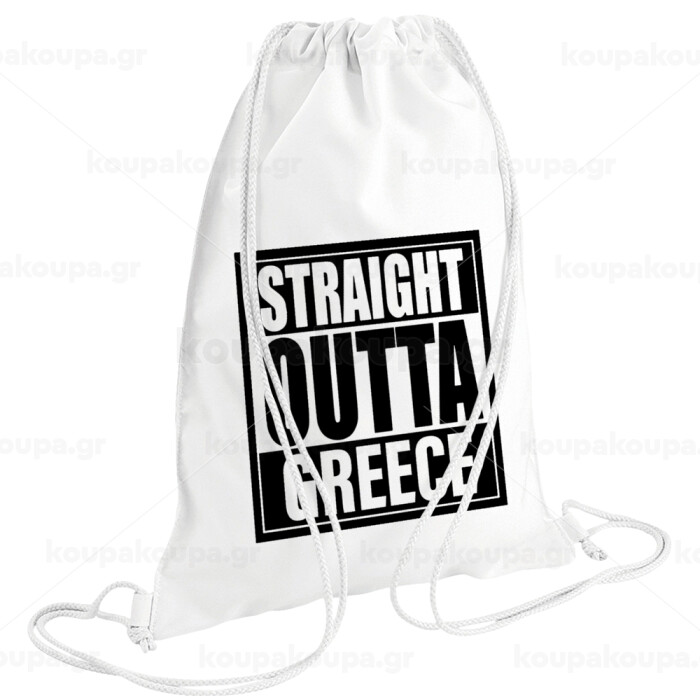 Straight Outta greece, Τσάντα πλάτης πουγκί GYMBAG λευκή (28x40cm)