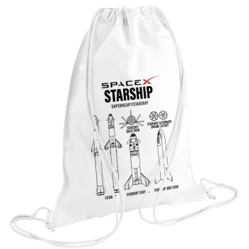 Space X, Τσάντα πλάτης πουγκί GYMBAG λευκή (28x40cm)