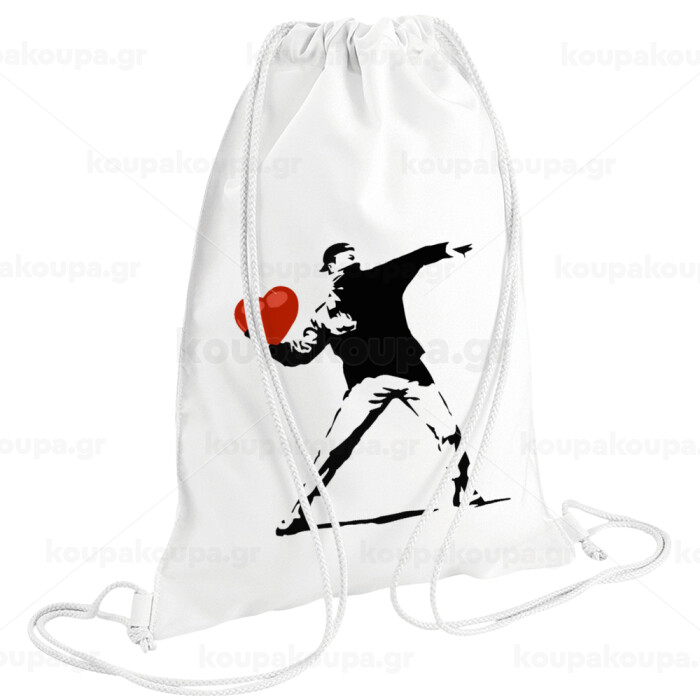 Banksy (The heart thrower), Τσάντα πλάτης πουγκί GYMBAG λευκή (28x40cm)