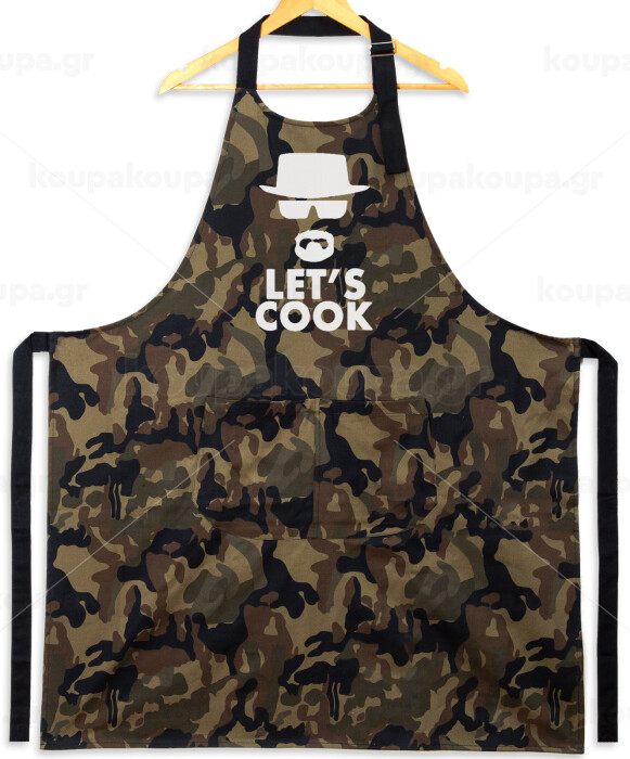 Let's cook, Ποδιά Σεφ με τσέπες, Βαμβακερή, Camouflage (ΕΝΗΛΙΚΩΝ, 100% COTTON)