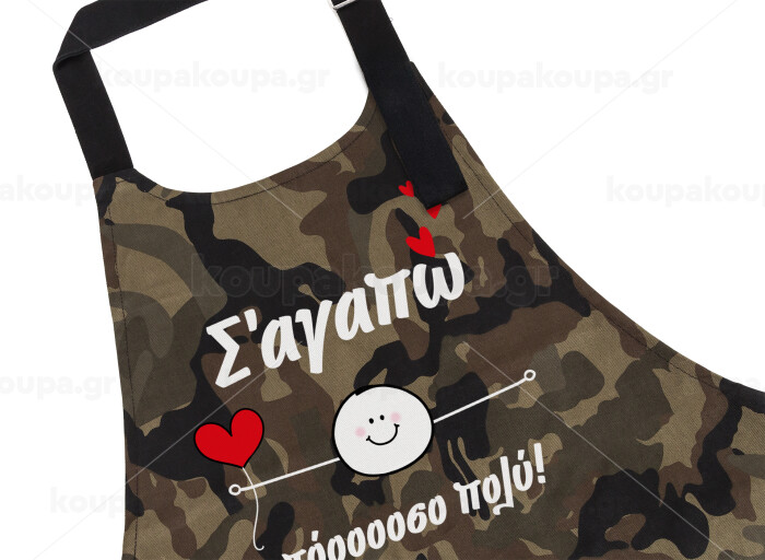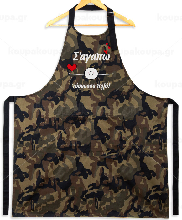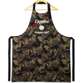 Σ΄αγαπώ τόοοοσο πολύ (Αγόρι)!!!, Ποδιά Σεφ με τσέπες, Βαμβακερή, Camouflage (ΕΝΗΛΙΚΩΝ, 100% COTTON)