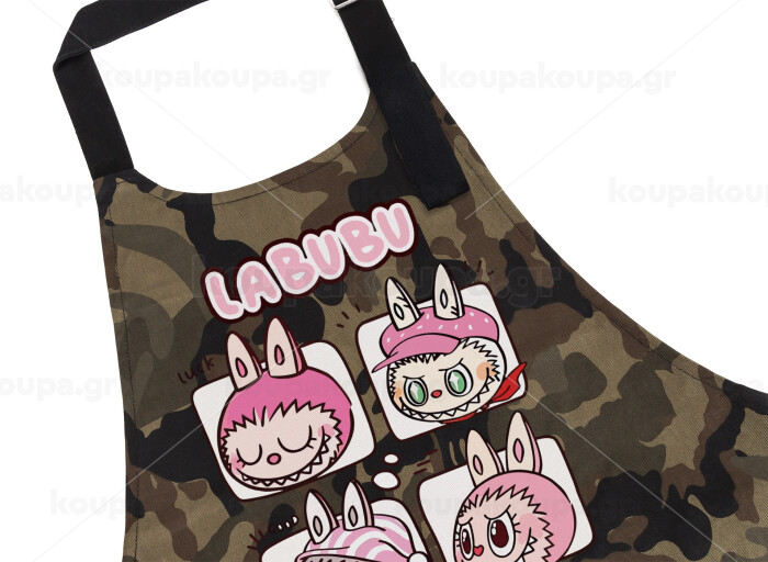 Labubu pink, Ποδιά Σεφ με τσέπες, Βαμβακερή, Camouflage (ΕΝΗΛΙΚΩΝ, 100% COTTON)