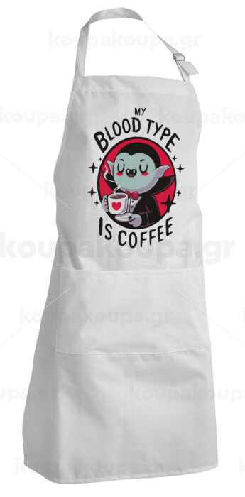 My blood type is coffee, Ποδιά Σεφ Ολόσωμη Ενήλικων (με ρυθμιστικά και 2 τσέπες)
