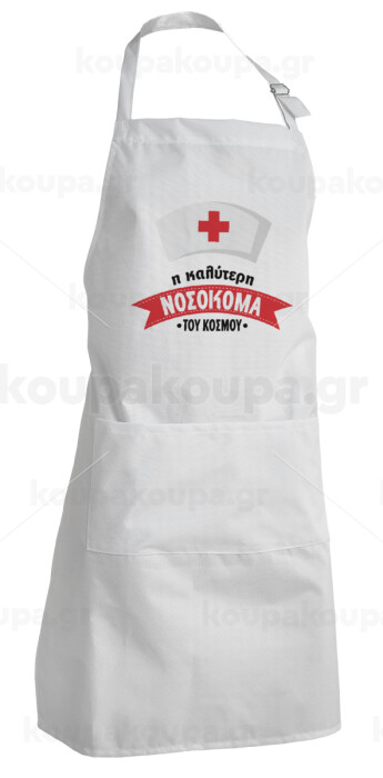 Material: 80% polyester / 20% cotton, 220 gsm twill.Μεγάλα κορδόνια μέσηςΡυθμιζόμενο κορδόνι λαιμούΔιπλή μεγάλη τσέπηΠλύσιμο στους 40ºΕίδος ΣεφΤύπος ΟλόσωμηΧρώμα Λευκόμε Τσέπη ΝαιPocket measures: 40 x 22 cm.