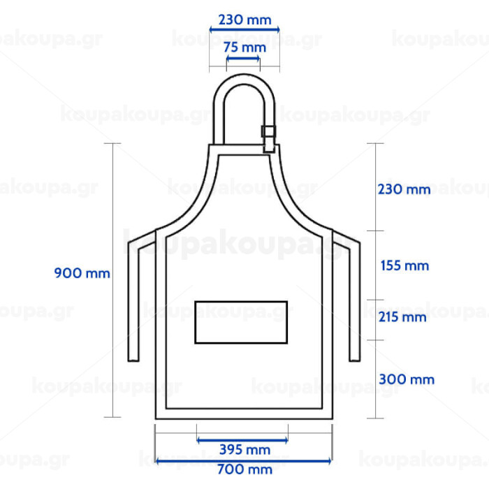 Προσφέρει κάλυψη ολόκληρου του σώματος και σας προστατεύει από πιτσιλίσματα και λεκέδες. Δένει και ρυθμίζεται γύρω από το λαιμό και στο πίσω μέρος της μέσης. Επιτρέπει στο προσωπικό της κουζίνας να μεταφέρει απαραίτητα εργαλεία όπως θερμόμετρο και διάφορα άλλα αξεσουάρ.