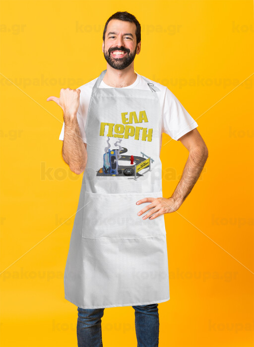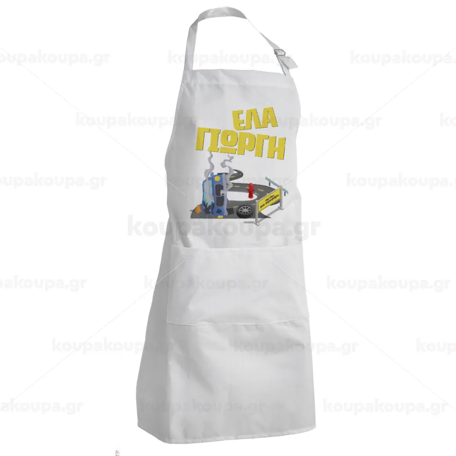 Έλα Γιώργη, πω πω μια στροφάρα, Ποδιά Σεφ Ολόσωμη Ενήλικων (με ρυθμιστικά και 2 τσέπες)