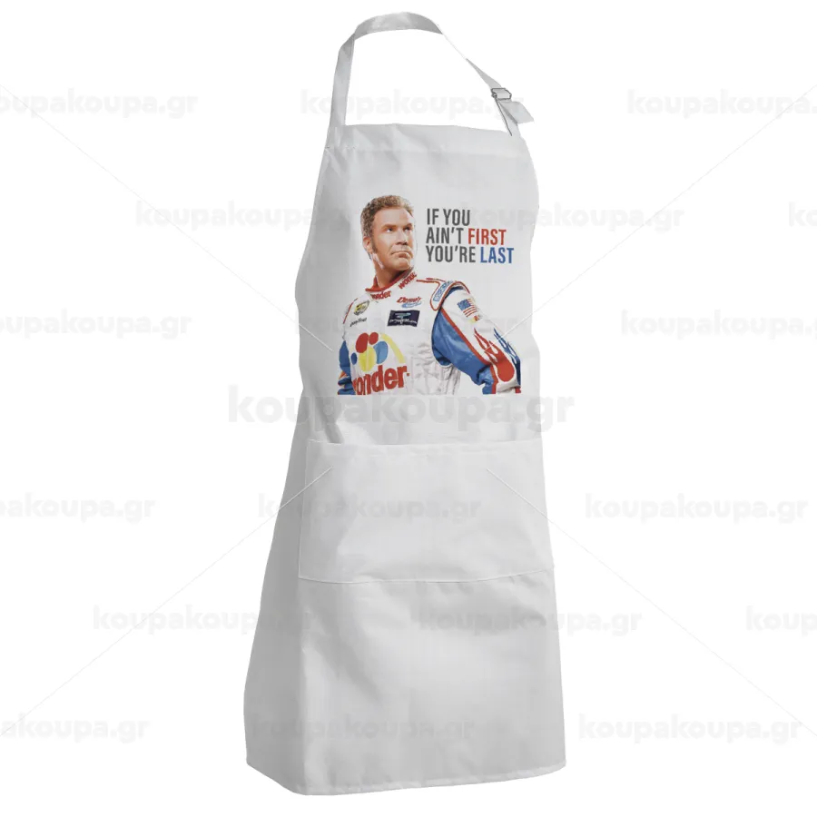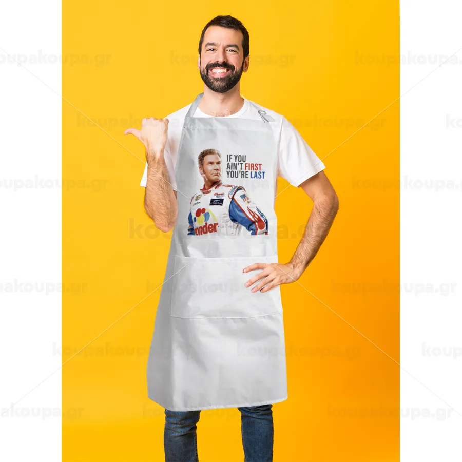 If You Ain't First You're Last Ricky Bobby, Talladega Nights, Ποδιά Σεφ Ολόσωμη Ενήλικων (με ρυθμιστικά και 2 τσέπες)