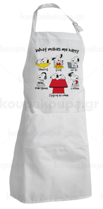 Snoopy what makes my happy, Ποδιά Σεφ Ολόσωμη Ενήλικων (με ρυθμιστικά και 2 τσέπες)