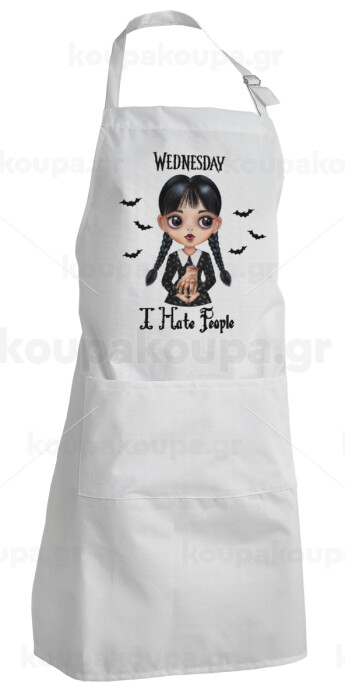 Wednesday Adams, i hate people, Ποδιά Σεφ Ολόσωμη Ενήλικων (με ρυθμιστικά και 2 τσέπες)