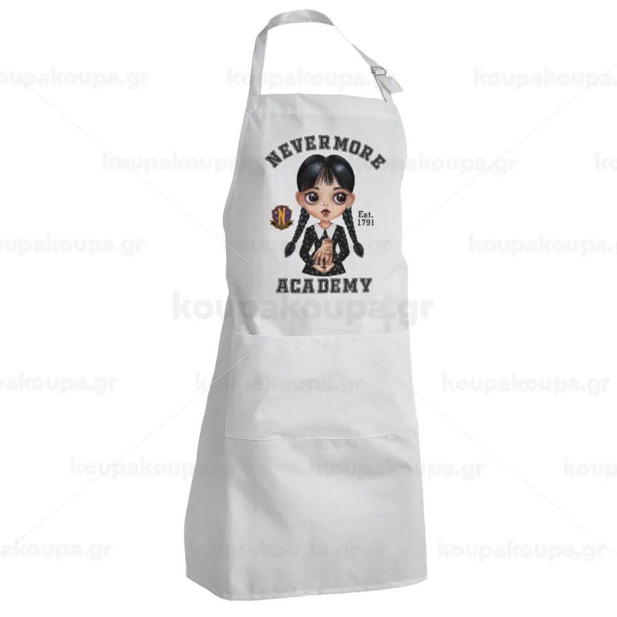 Wednesday Adams, nevermore, Ποδιά Σεφ Ολόσωμη Ενήλικων (με ρυθμιστικά και 2 τσέπες)