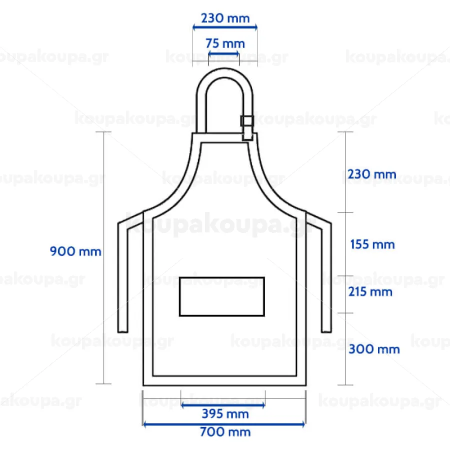 Προσφέρει κάλυψη ολόκληρου του σώματος και σας προστατεύει από πιτσιλίσματα και λεκέδες. Δένει και ρυθμίζεται γύρω από το λαιμό και στο πίσω μέρος της μέσης. Επιτρέπει στο προσωπικό της κουζίνας να μεταφέρει απαραίτητα εργαλεία όπως θερμόμετρο και διάφορα άλλα αξεσουάρ.
