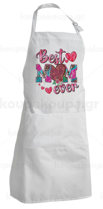 Best mom ever Mother's Day pink, Ποδιά Σεφ Ολόσωμη Ενήλικων (με ρυθμιστικά και 2 τσέπες)