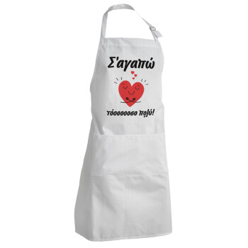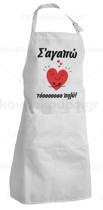 Σ΄αγαπώ τόοοοσο πολύ καρδιά, Ποδιά Σεφ Ολόσωμη Ενήλικων (με ρυθμιστικά και 2 τσέπες)
