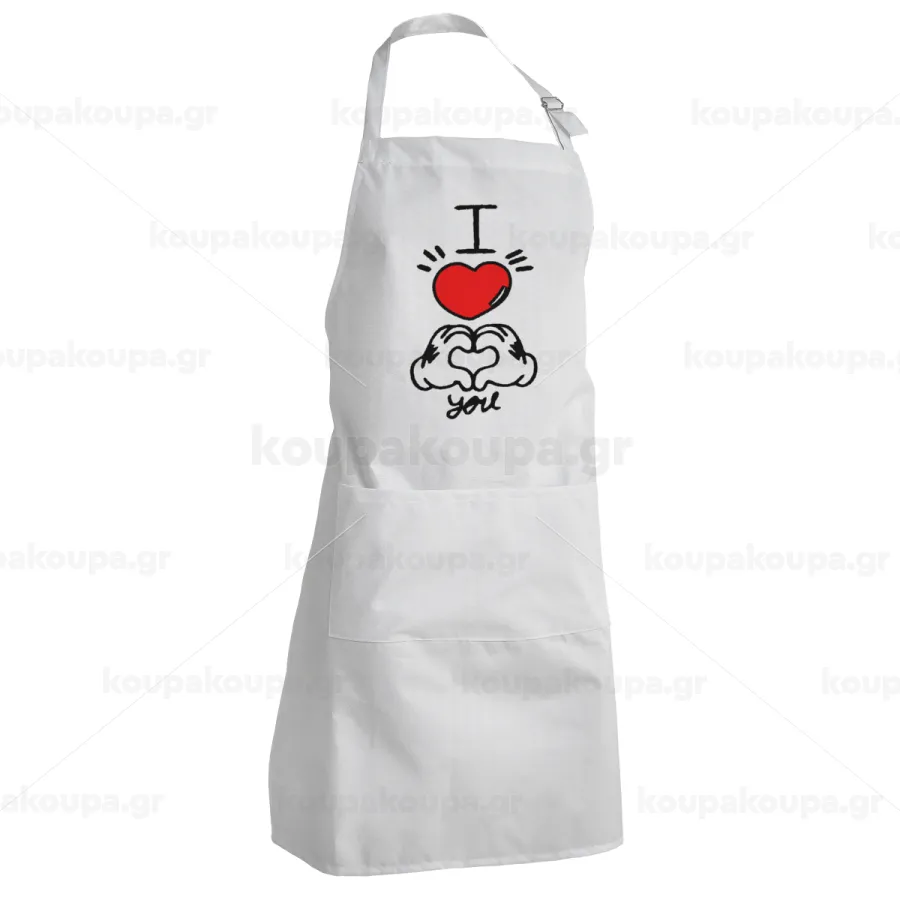 comics hands love, Ποδιά Σεφ Ολόσωμη Ενήλικων (με ρυθμιστικά και 2 τσέπες)