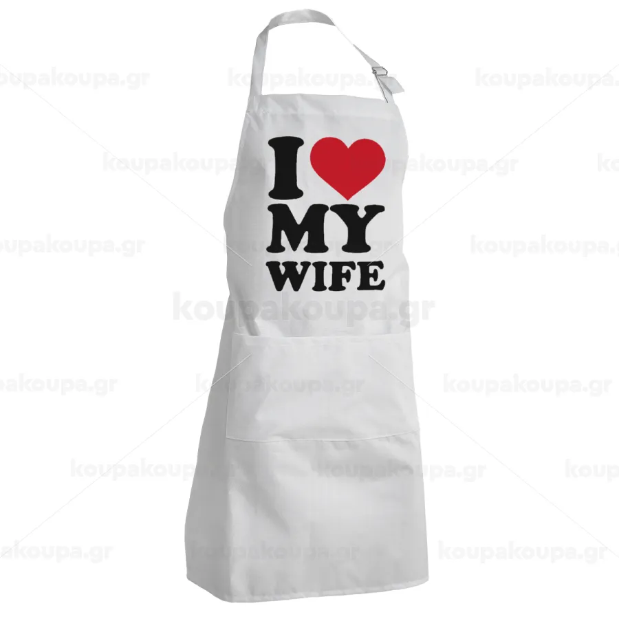 I Love my Wife, Ποδιά Σεφ Ολόσωμη Ενήλικων (με ρυθμιστικά και 2 τσέπες)