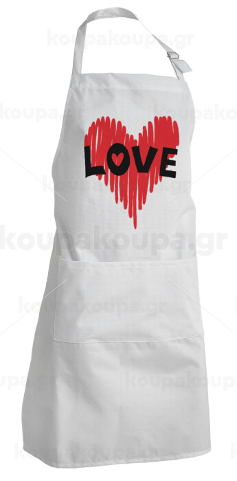 I Love You red heart, Ποδιά Σεφ Ολόσωμη Ενήλικων (με ρυθμιστικά και 2 τσέπες)