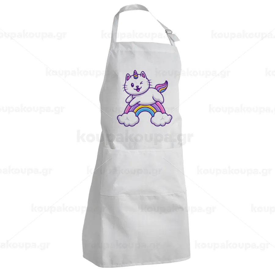Cute cat unicorn, Ποδιά Σεφ Ολόσωμη Ενήλικων (με ρυθμιστικά και 2 τσέπες)