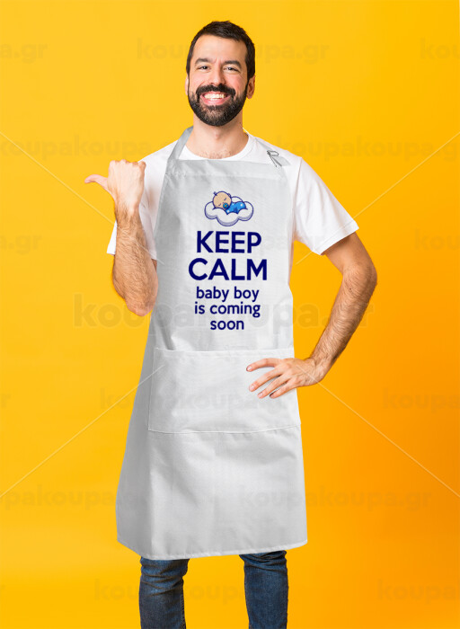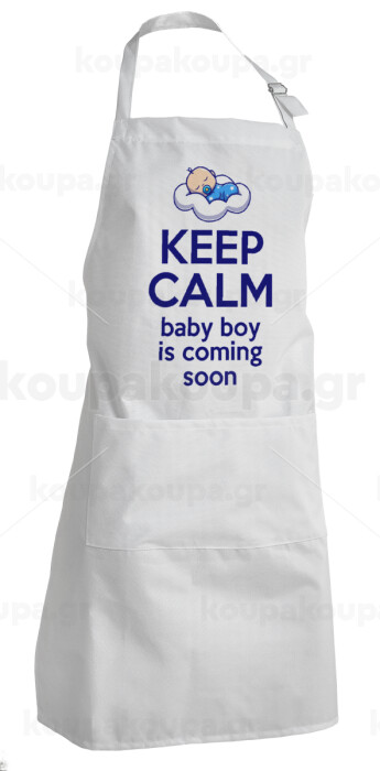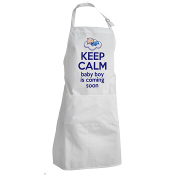 KEEP CALM baby boy is coming soon!!!, Ποδιά Σεφ Ολόσωμη Ενήλικων (με ρυθμιστικά και 2 τσέπες)
