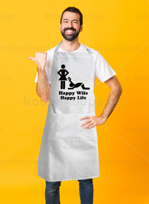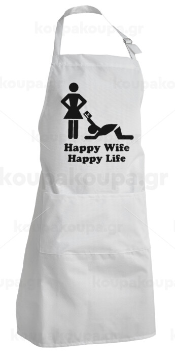 Happy Wife, Happy Life, Ποδιά Σεφ Ολόσωμη Ενήλικων (με ρυθμιστικά και 2 τσέπες)