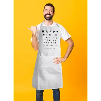 EYE tester happy birthday., Ποδιά Σεφ Ολόσωμη Ενήλικων (με ρυθμιστικά και 2 τσέπες)