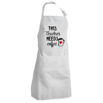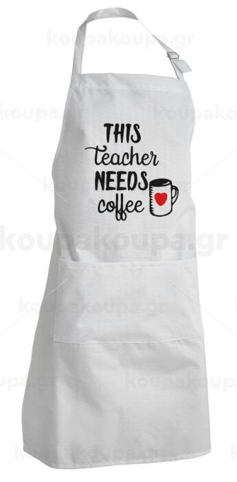 Τhis teacher needs coffee, Ποδιά Σεφ Ολόσωμη Ενήλικων (με ρυθμιστικά και 2 τσέπες)