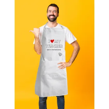 i love my teacher but no the homework outline, Ποδιά Σεφ Ολόσωμη Ενήλικων (με ρυθμιστικά και 2 τσέπες)