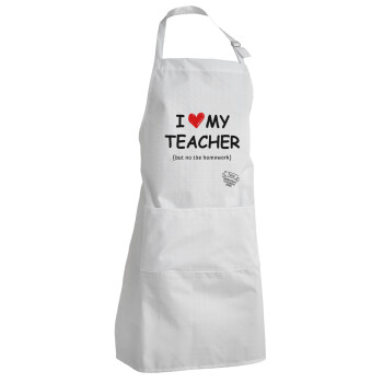i love my teacher but no the homework, Ποδιά Σεφ Ολόσωμη Ενήλικων (με ρυθμιστικά και 2 τσέπες)