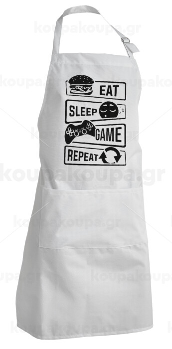 Eat Sleep Game Repeat, Ποδιά Σεφ Ολόσωμη Ενήλικων (με ρυθμιστικά και 2 τσέπες)