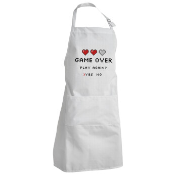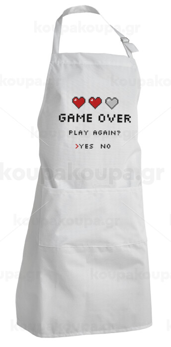 GAME OVER, Play again? YES - NO, Ποδιά Σεφ Ολόσωμη Ενήλικων (με ρυθμιστικά και 2 τσέπες)