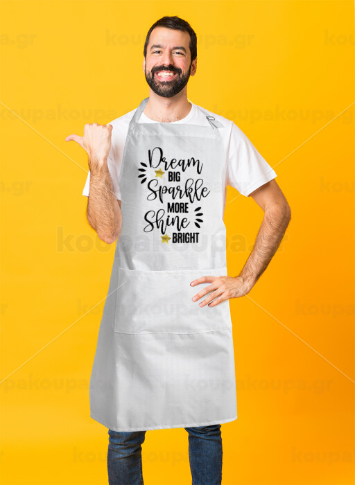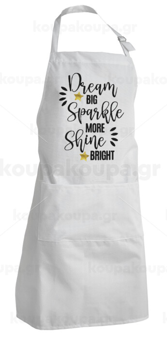 Dream big, Sparkle more, Shine bright, Ποδιά Σεφ Ολόσωμη Ενήλικων (με ρυθμιστικά και 2 τσέπες)
