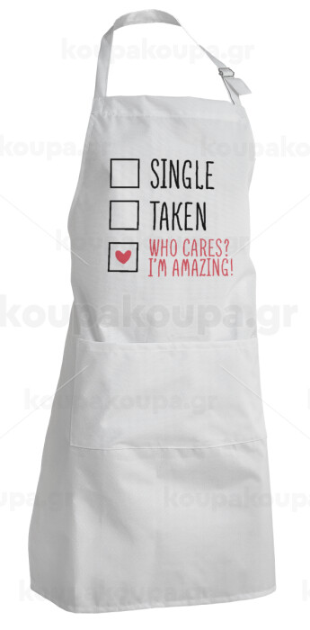 Single, Taken, Who cares i'm amazing, Ποδιά Σεφ Ολόσωμη Ενήλικων (με ρυθμιστικά και 2 τσέπες)
