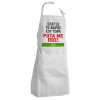 Material: 80% polyester / 20% cotton, 220 gsm twill.Μεγάλα κορδόνια μέσηςΡυθμιζόμενο κορδόνι λαιμούΔιπλή μεγάλη τσέπηΠλύσιμο στους 40ºΕίδος ΣεφΤύπος ΟλόσωμηΧρώμα Λευκόμε Τσέπη ΝαιPocket measures: 40 x 22 cm.